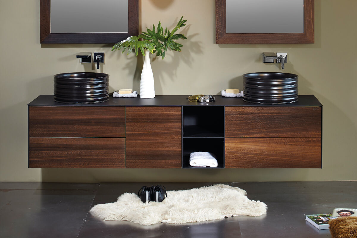Vyjímečnost koupelnového nábytku Le bon spočívá v použití hodnotných materiálů, propracovaném designu a užitných vlastnostech. Voděodolné krycí desky se snadnou údržbou kombinuje s přírodními materiály s originální strukturou.